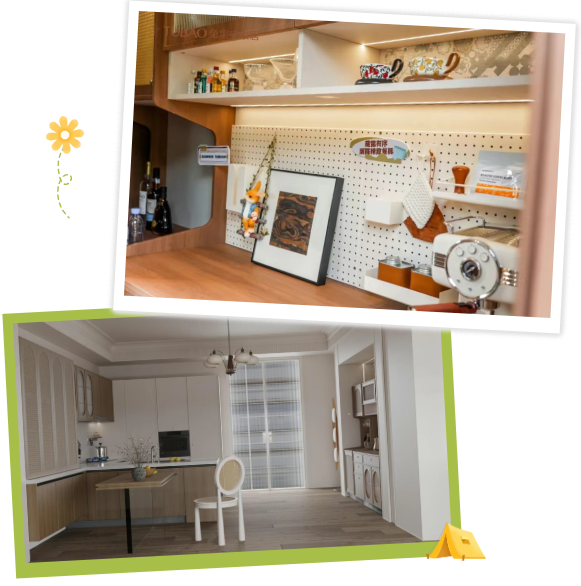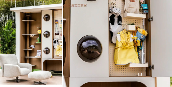 织梦系列聚焦于00后未育有宠人群,在充分满足空间与审美需求的同时,挑战收纳的极限。它简化了柜门、拉手等设计元素,选用低饱和度的奶油系色彩,利用弧形元素打破常规,增添了空间的高级感。此外还有一个加分项,那就是它巧妙得融入宠物专区,有爱程度绝对是够够的,营造了简约治愈的整家空间氛围。